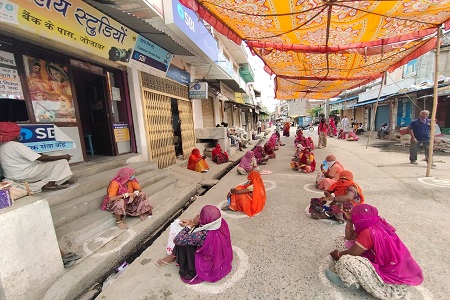 Village ladies waiting to draw Govt payments ,maintaining social distancing in Rajastan